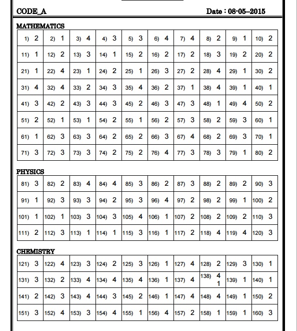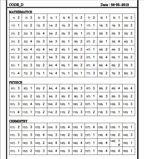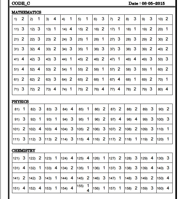Take a look at AP EAMCET 2015 answer keys by Sri Chaitanya for Engineering Entrance Exam below: