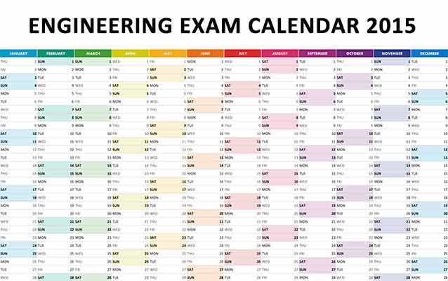 Given below is a detailed month wise calendar of events for the important engineering exams scheduled to be conducted in 2015. The list includes exams like JEE(Joint Entrance Exam) Main, JEE Advanced, BITSAT(Birla Institute of Technology and Science Aptitude Test), VITEEE(Vellore Institute of Technology Engineering Entrance Exam), SRMJEEE(SRM Joint Engineering Entrance Exam), KIITEE(Kalinga Institute of Industrial Technology Entrance Exam), KCET( Karnataka Common Entrance Test) etc.