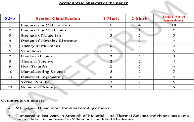 - Compared to last year, Engineering Mechanics weightage has come down while it is increased in Strength of Materials, Thermal Science and manufacturing Science.
