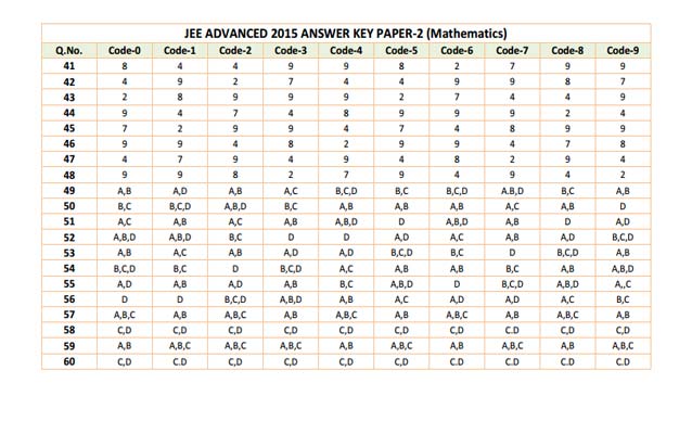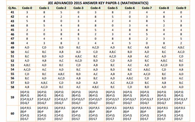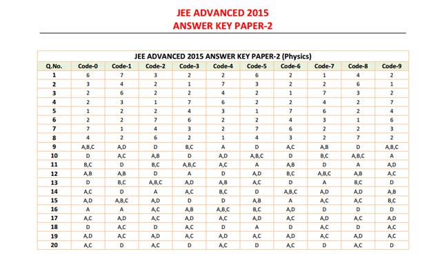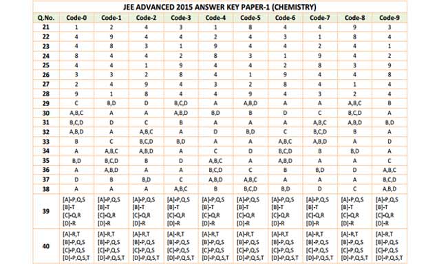 Career Point Kota has shared the JEE Advanced 2015 answer keys for Paper-1 and Paper-2. Candidates are advised to go through these answer keys to find out how they have performed in the exam.