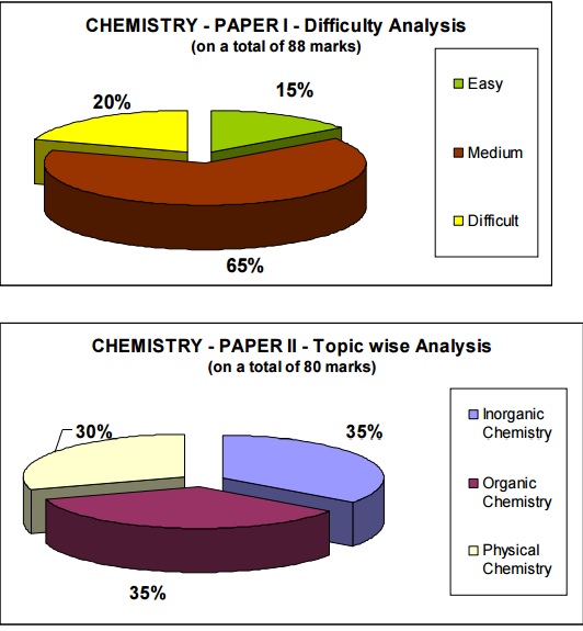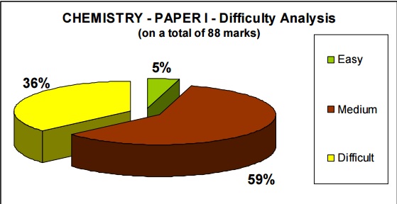 In general, the questions in Chemistry may be considered as moderate in difficulty level. But the one negative aspect of the paper would be that there is a tendency to create confusion when a student applies his/ her knowledge to arrive at the answer; and in this process some might lose precious time and further confidence. It may also be noted that the syllabus represented in this paper comes from a rather narrower range of portions. A broad division of the paper would be as follows:
