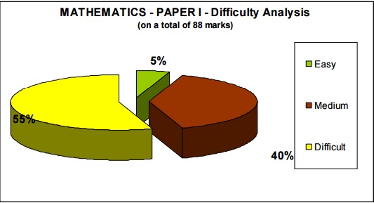 Mathematics part of paper 1 of JEE Advanced 2015 was a moderately difficult paper and included lesser easy questions than difficult questions. The Matrix Match type questions included concepts from various areas. The easier questions were a scarcity in the paper and some of the medium level questions required longer calculations. With only 32% of the marks under the βeasyβ category, this is a challenging paper.