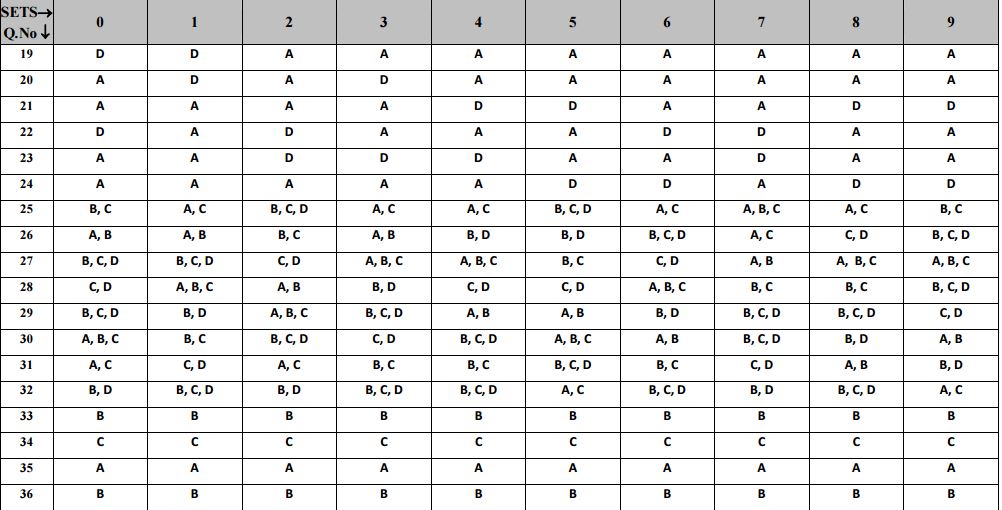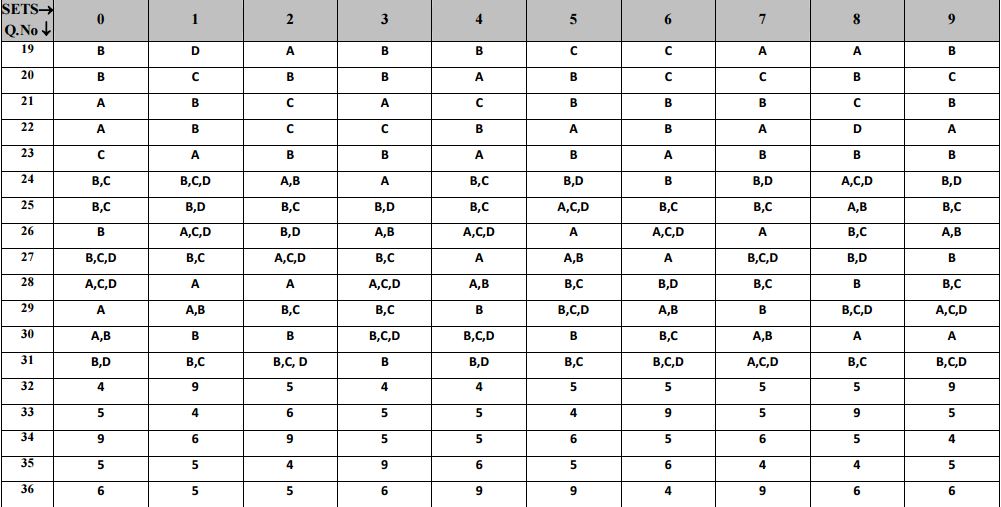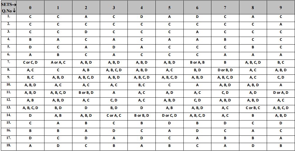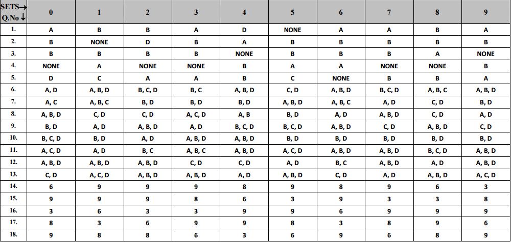 Physics: Answer Key for all sets