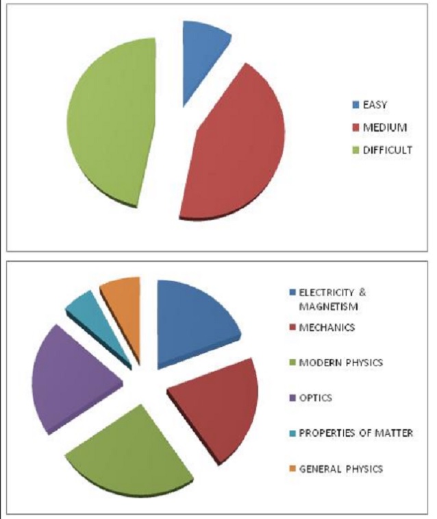 But among the 6 questions from the Physical portions only 2 were easy; 2 were of medium difficulty level and 2 were difficult. These questions involved application of principles studied.