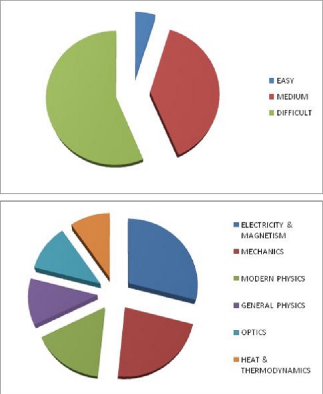 In the Physics part, representation from Class XI areas is relatively less and Modern Physics secured high importance. Questions were lengthy in nature and to solve these problems students requires not just concepts of Physics but a solid understanding of applying mathematical tools also. Therefore majority of students would find the paper to be above average/ difficult.