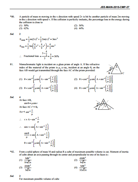 To develop a better understanding of how to exactly solve the questions put forth in JEE Main 2015 exam, candidates can go through the detailed test solutions and answers shared by FIITJEE. Aspirants can find below the detailed solutions for Test Booklet Code ‘B’ as shared by FIITJEE below: