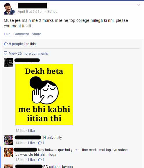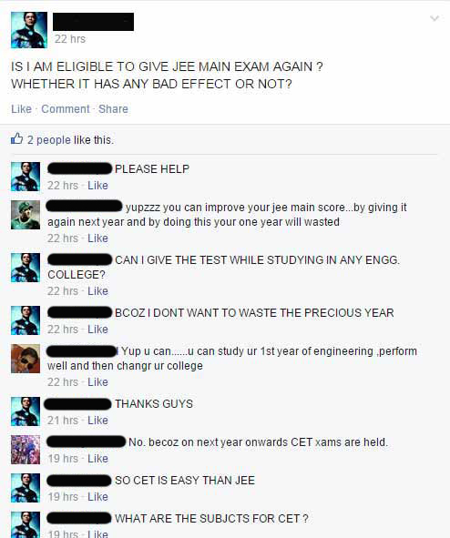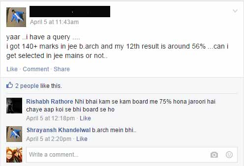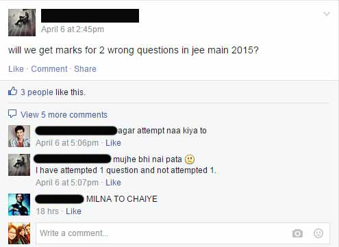 Facebook, which is one of the world’s most popular social media websites, was flooded with reactions in garb of posts on various JEE Main 2015 groups. While some posts were funny, there were others which revealed how tensed or relaxed students are regarding the cut offs for the exam. Some posts were quite random too.