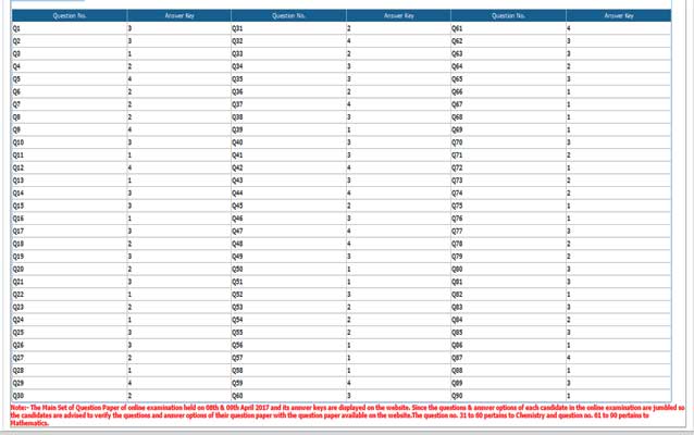 JEE Main 2017 Answer Keys For Online Exam