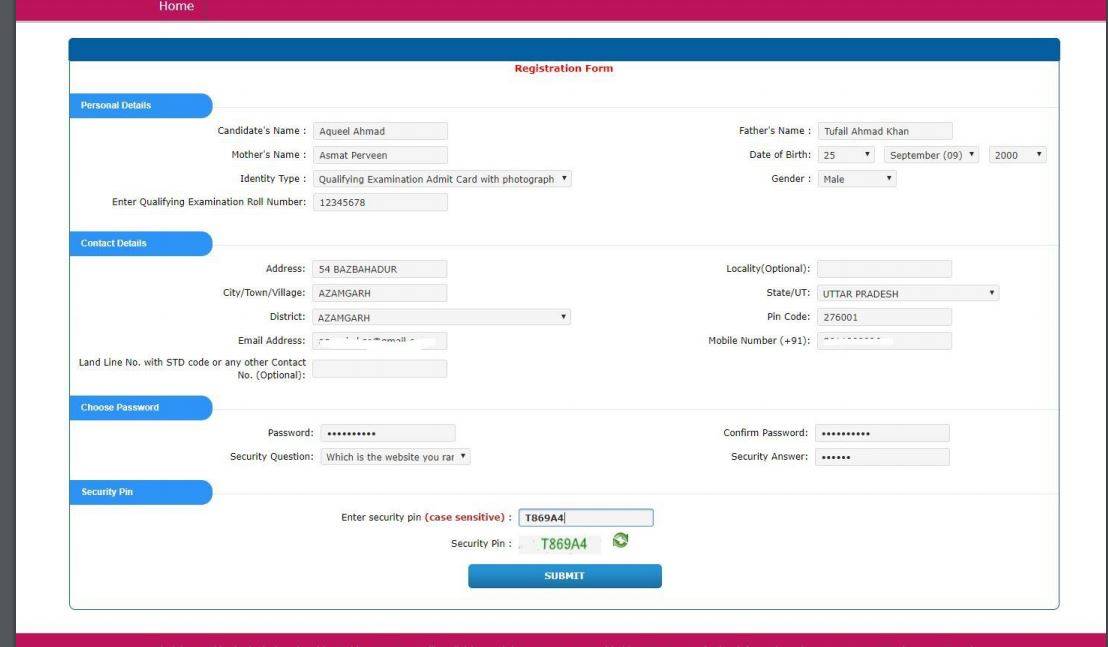 आगे, उम्मीदवारों को आवेदन पत्र में उनके व्यक्तिगत, शौक्षणिक, और संपर्क का विवरण देना है और सिस्टम द्वारा उत्पन्न आवेदन संख्या को नोट करना है। उन्हें एक पासवर्ड भी बनाना होगा जो की भविष्य में आवेदन सुधार, प्रवेश पत्र डाउनलोड, रिजल्ट जानने इत्यादि के लिए लॉगिन करते समय उपयोग होगा। नीचे विवरण दिया गया है जो छात्रों को आवेदन पत्र में भरना होगा।