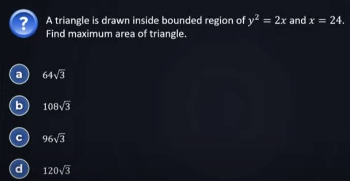 | Topics asked in Maths | Hyperbola, circles, matrics, vectors, 3D, integration, area under the curve, differential equations |