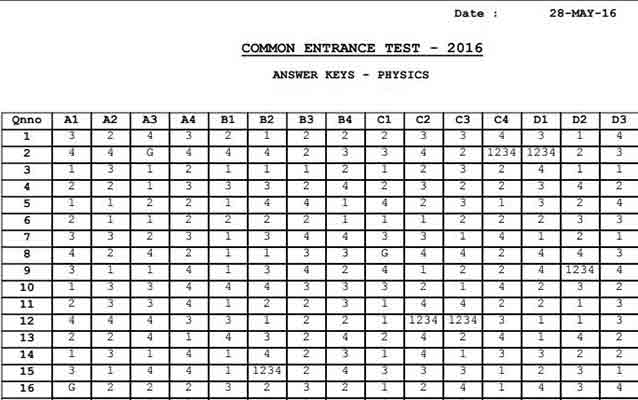 KCET 2016 is a common entrance test conducted by KEA for admissions to undergraduate engineering programmes, offered by colleges in the State of Karnataka. KCET 2016 was conducted on May 4 and 5, across various test centres in Karnataka. The exam paper of KCET had 16 different versions, which had questions from Physics, Chemistry, and Mathematics/Biology. Take a look at the final answer key for KCET 2016: