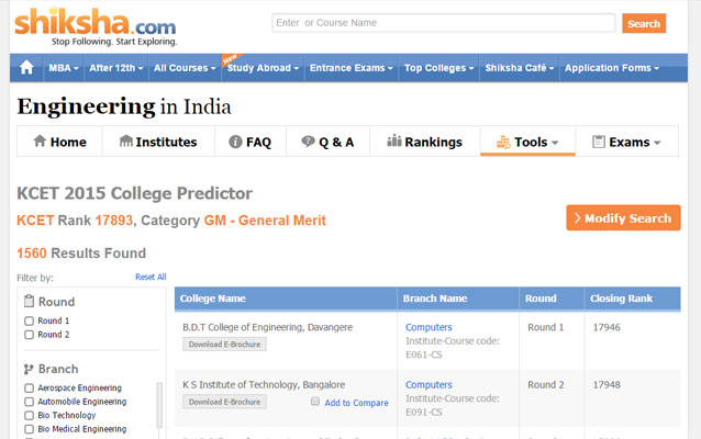 Right after giving any entrance exam students want to find out which course and college in which they can secure admissions. To help students in this inquisitive phase, Shiksha.com has launched the KCET 2015 College Predictor Tool.