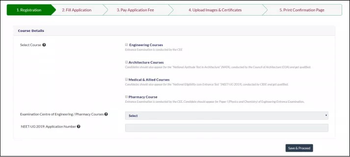 Examination details - Select any course from – Engineering/Architecture/Medical & Allied/Pharmacy