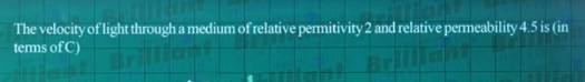 Q: The ratio of the velocity of light in a vaccum to that in a medium is?