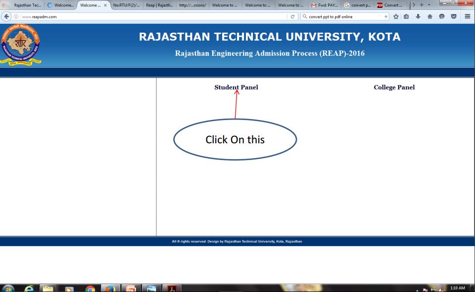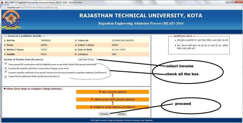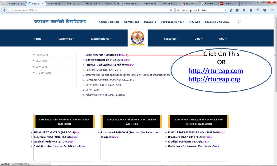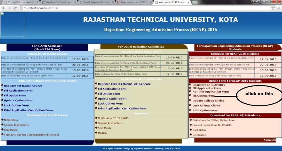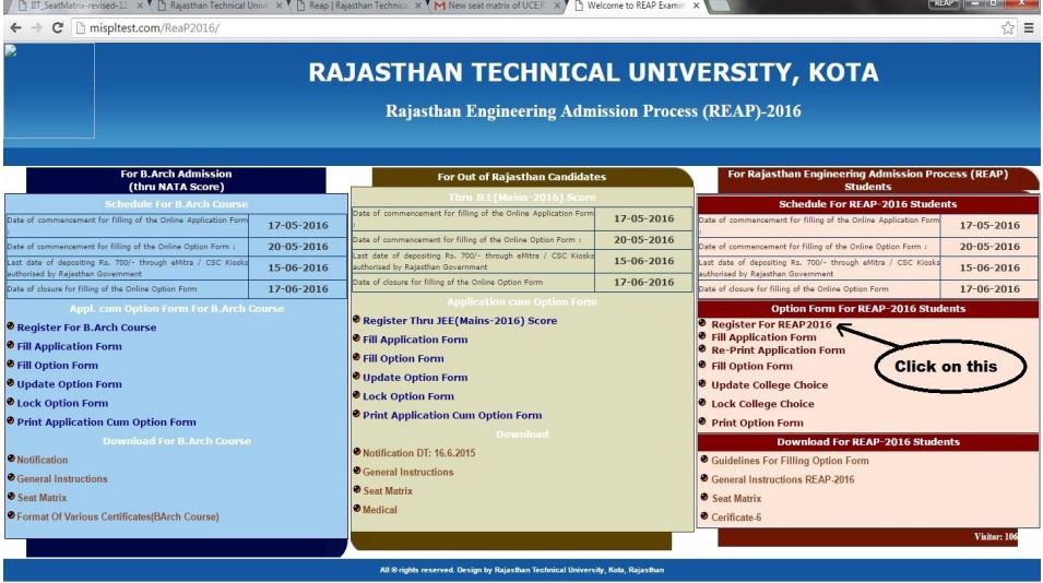 Students from outside Rajasthan needs to go through the following steps to register for REAP: