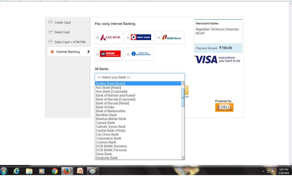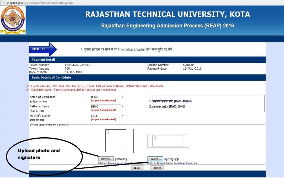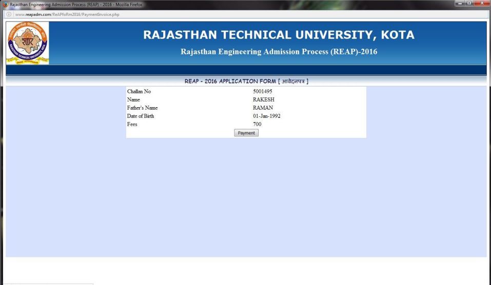 Click on “Register for Out of Rajasthan Candidates” on the official website of Rajasthan Technical University. Fill details such as Name of Candidate, Father’s Name, and Date of Birth, and select Payment Method, and click “NEXT.” Now, pay the fee using either online or offline method to register for REAP 2016.