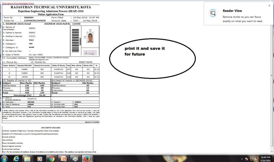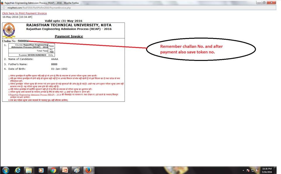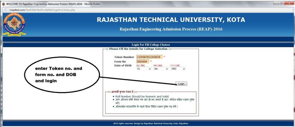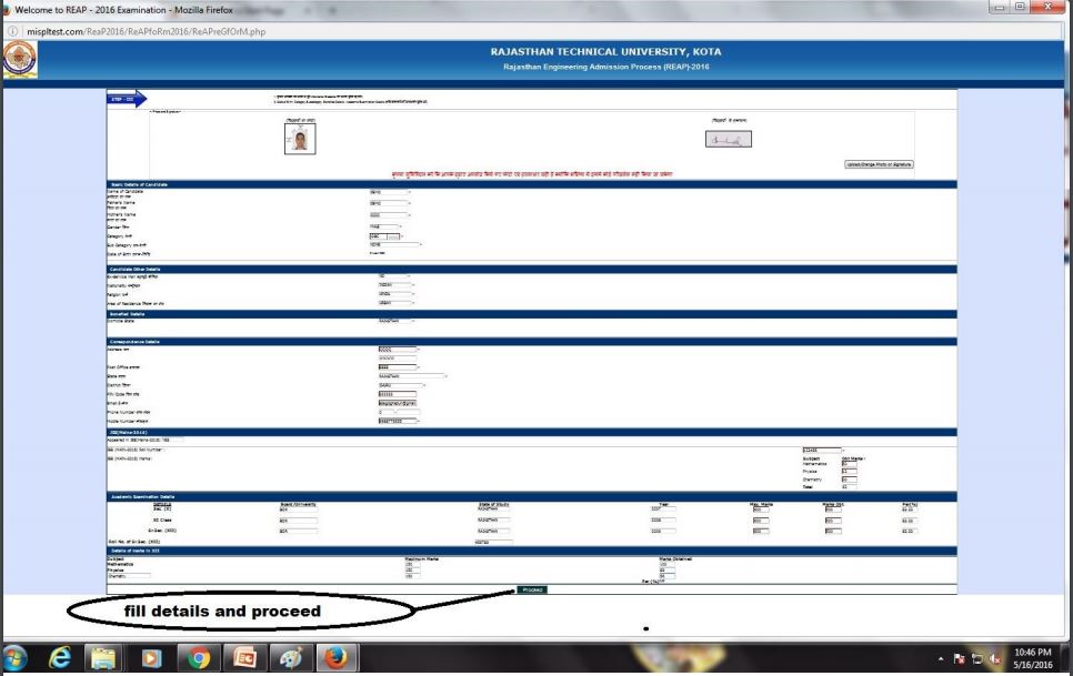 Click on “Register for REAP 2016” on the official website of Rajasthan Technical University. Fill details such as Name of Candidate, Father’s Name, Date of Birth, and Payment Method, and click “NEXT.” Now, pay the fee using either online or offline method to register for REAP 2016.