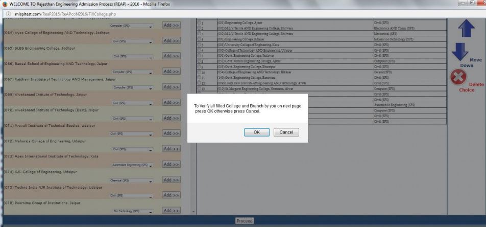 Those who wants to update the College Choice can click “Update College Choice” and fill the required details in order to update the College Choice.