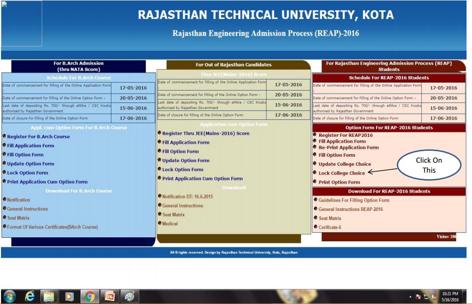 5. Now, go to the option form for REAP 2016 students as shown below and click on “Register for REAP 2016”.