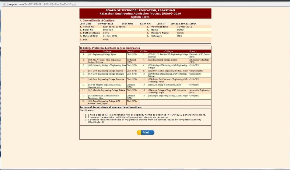 Lastly, to reprint the application form, one need to click “Re-print Application Form” and enter details such as Token No., Application Form No. and Date of Birth, and click “Proceed.”