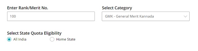 Step 2: Enter your Rank/Merit Number and select your category from the nice given categories including: