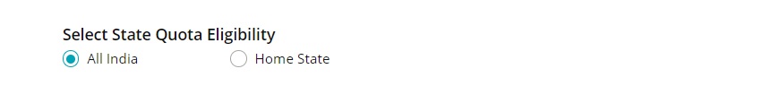 Step 3: Now select your State Quota Eligibility. You would have two options two choose from: All India (AI) Quota and Home State (HS) Quota.