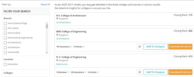 Besides this, candidates would also be able to go through reviews, QnA and articles around a particular college. Students can also download college brochures from this KCET 2018 College Predictor Tool, if interested.