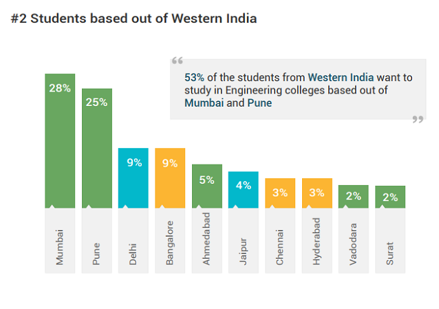 Students from Central India are happy to study in an engineering college within the region, but the region does not attract student interest from the rest of India. Especially, students from Western India showed no interest in taking admission in an engineering college in Central India.