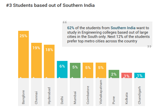 South India: JEE Main is less popular in South compared to other regions. Students prefer exams such as VITEEE, BITSAT, SRMJEEE, AEEE and MET over JEE Main