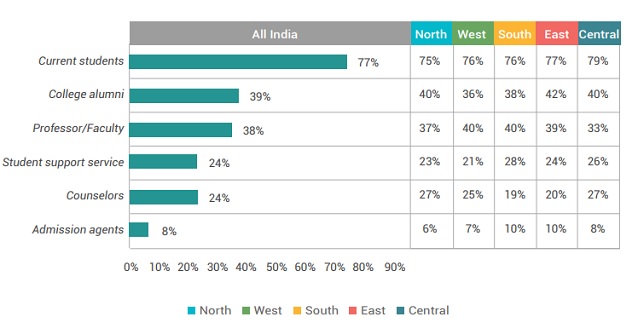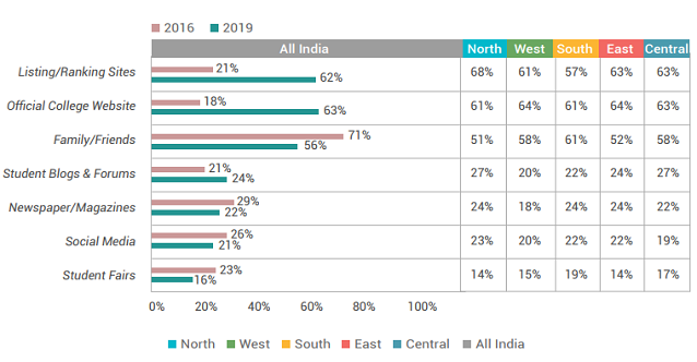 It’s clearly visible that traditional sources of information such as Student Fairs, Family/Friends and Print Advertisements are losing their sheen as compared to the more popular online options.