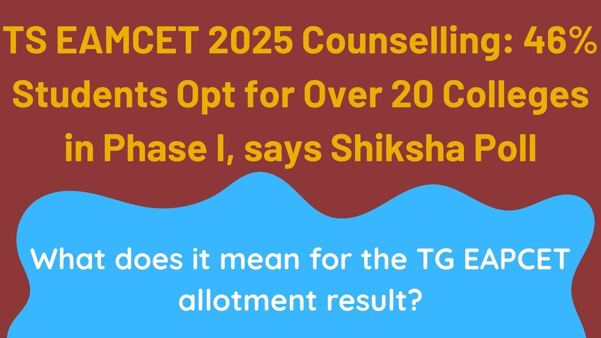 As the TS EAMCET 2025 Phase I counselling gains momentum and the TG EAPCET Phase 1 seat allotment result 2025, TODAY is about to release, a recent poll conducted on Shiksha has shed light on a compelling trend among aspirants: nearly half the participants (46%) are opting to list more than 20 colleges during the option entry process. Read below for more.