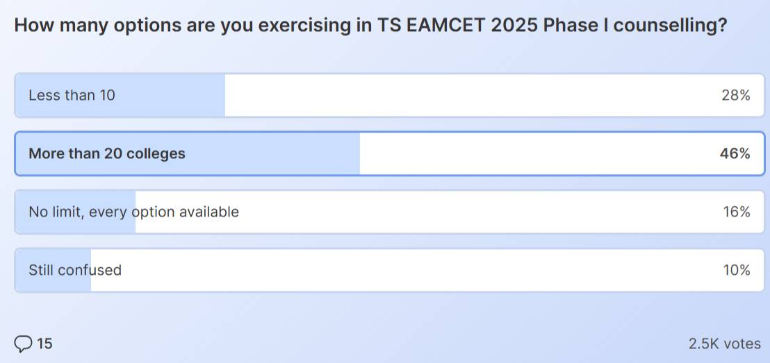 The poll asked: “How many options are you exercising in TS EAMCET 2025 Phase I counselling?”