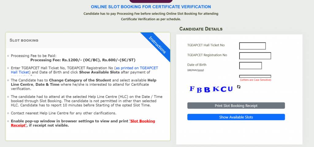 - The candidate had to attend the selected Help Line Centre (HLC) on the Date / Time booked through Slot Booking. The candidate is not permitted in other than the selected HLC. The candidate has to report 10 minutes before the start of the opted slot time.