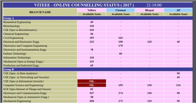 Check VITEEE 2017 Counselling details below:
