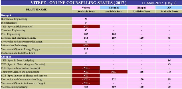 VITEEE 2017 Phase I Counselling: Day 2 status
