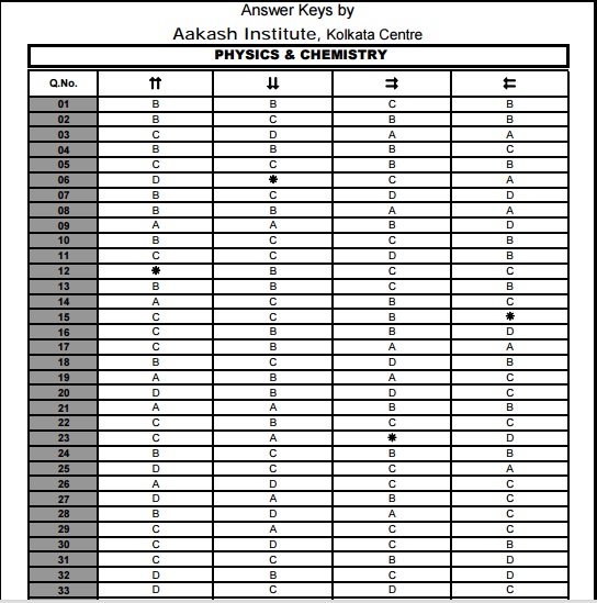 Take a look at WBJEE 2015 answer keys by Aakash Coaching Institute below: