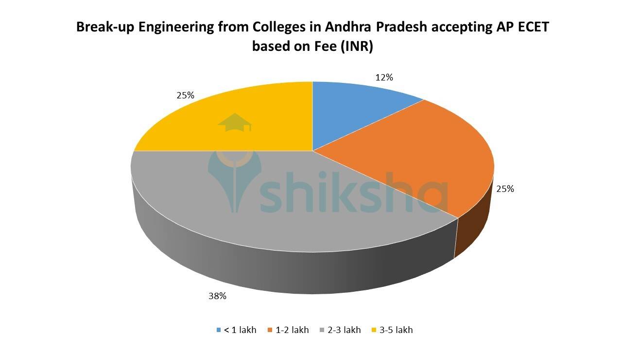 Based on the above pie chart, it can be estimated that pursuing Engineering in Colleges in Andhra Pradesh accepting AP ECET is moderately expensive as 38 percent of the colleges have total course fees between INR 2-3 lakh. Some of these colleges are: