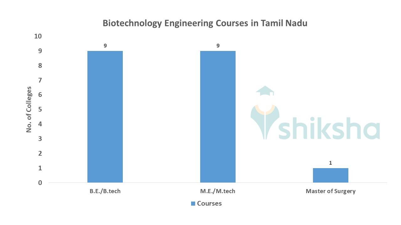 There are almost 100 Biotechnology Engineering Colleges in Tamil Nadu. Out of which 86% are Private and rest are Public which offers UG and PG courses.