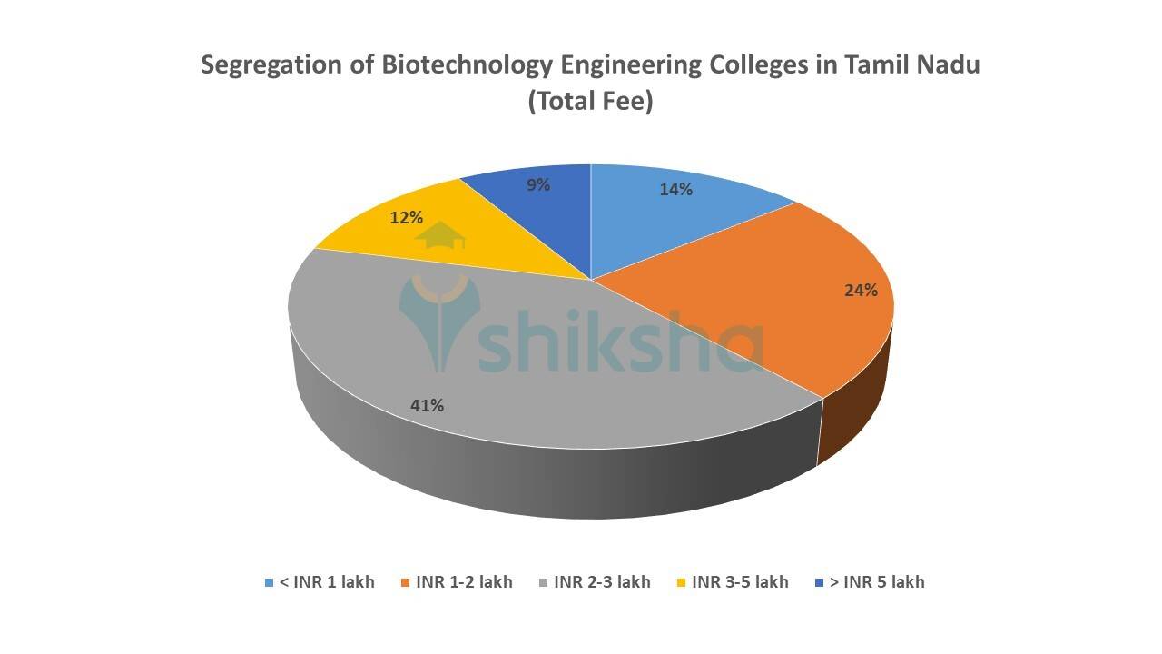 Based on Pie Chart, it is estimated that studying Biotechnology courses in Tamil Nadu is affordable. As 41% of colleges has their annual fees ranging INR 2-3 lakh and some of them are: