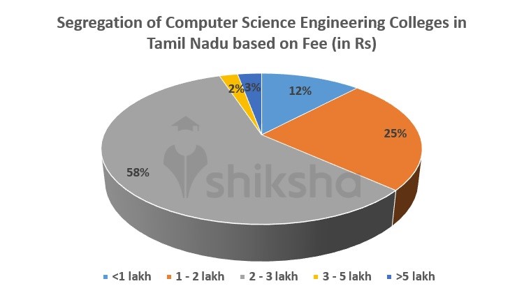 Based on the below pie chart, it can be estimated that pursuing Computer Science Engineering course from CSE colleges in Tamil Nadu is moderately-priced as approximately 58% of the colleges have course/annual fees ranging from Rs 2-3 lakh. Some of these colleges are: