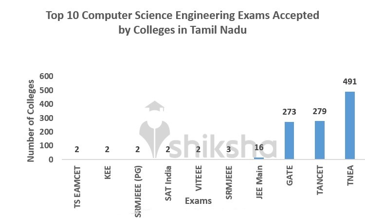 CSE colleges in Tamil Nadu accept score obtained by students in numerous national or state-level examinations including TNEA, TANCET, GATE, JEE Main, SRMJEEE, TS EAMCET, KEE, SRMJEEE (PG), SAT India, VITEEE and many more.