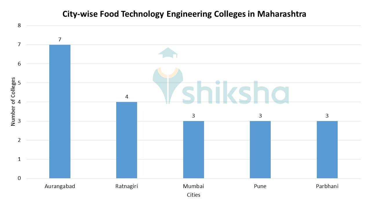 Among the Engineering colleges in Maharashtra, Aurangabad has the maximum number of Engineering colleges. Refer to the infographic below for a detailed overview of the city-wise distribution of Food Technology Engineering Colleges in Maharashtra: