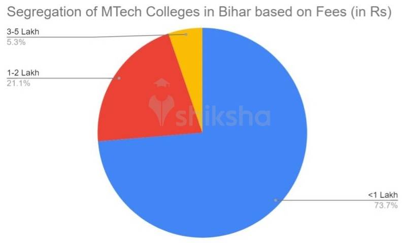 Based on the above pie chart, it can be estimated that pursuing MTech from engineering colleges in Bihar is moderately priced as approximately 74% of the colleges have course/annual fees less than Rs 1 lakh. Some of these colleges are: