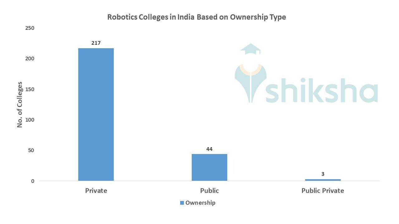 There are almost 265 robotics colleges in India. Out of which 82% are Private and rest are Public.
