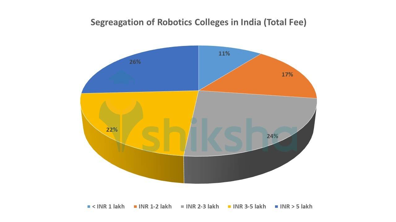 Based on Pie Chart, it is estimated that pursuing Robotics Engineering in India is slightly expensive. As 26% of colleges has their annual fees ranging > INR 5 lakh and some of the colleges are: