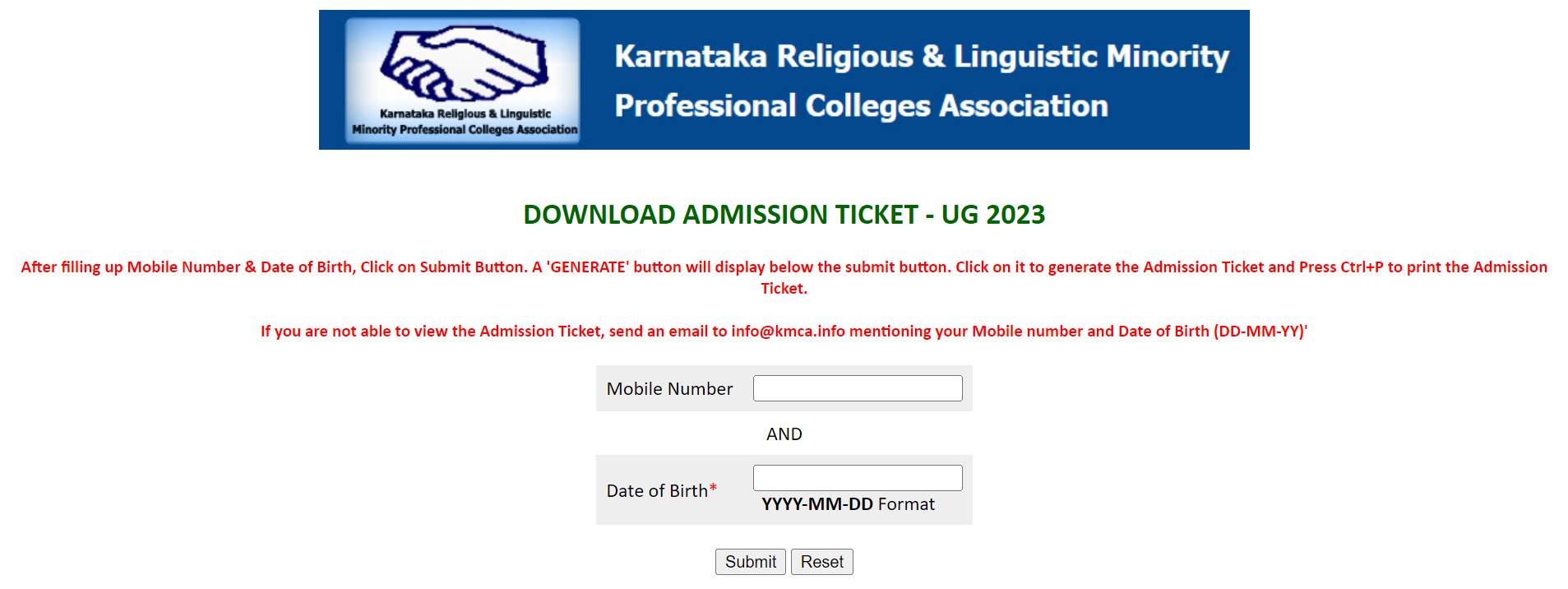 KRLMPCA CET Admit Card 2024: Karnataka Religious & Linguistic Minority Professional Colleges Association has released the KRLMPCA CET 2024 admit card at kmca.info. The details required to download the admit card of KRLMPCA CET 2024 are mobile number and date of birth. Applicants appearing for the exam must carry their KRLMPCA CET admit card along with one valid photo ID proof to the exam centre. KRLMPCA CET admit card 2024 mentions the candidate's personal details, exam date & time, exam day guidelines and others.