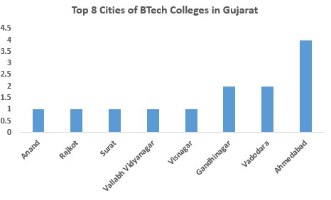 Refer to the infographics below to get a detailed overview of the top 8 Cities of BTech Colleges in Gujarat: