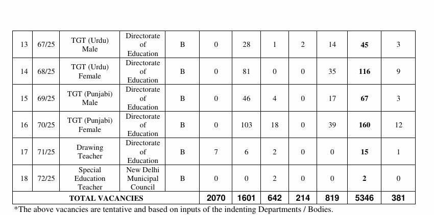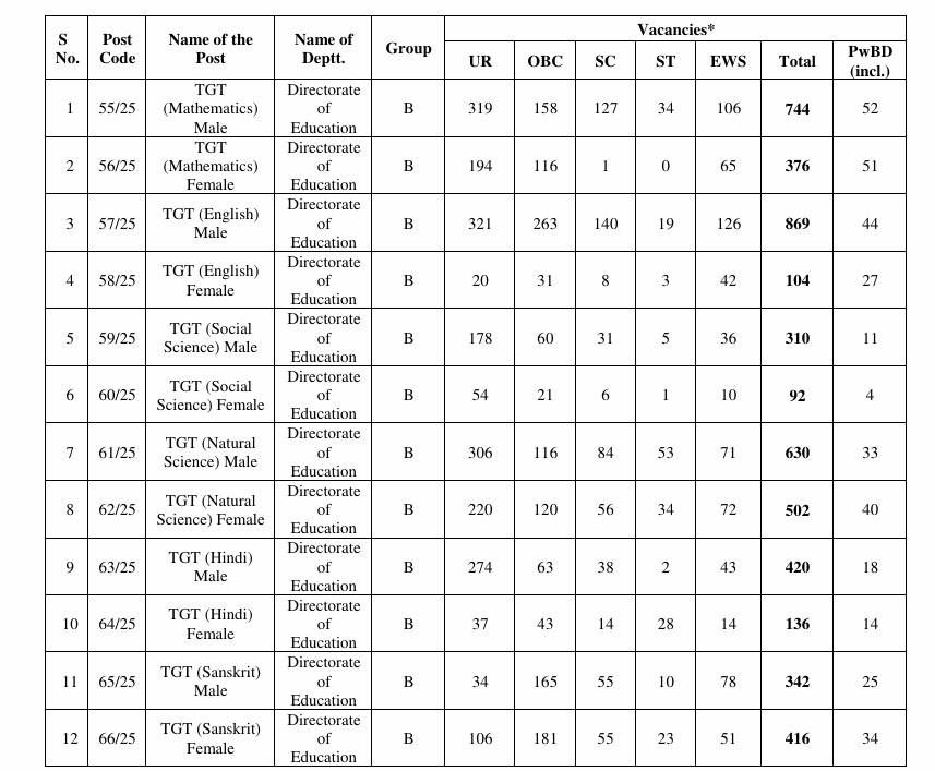 - DSSSB Recruitment 2025: Vacancy