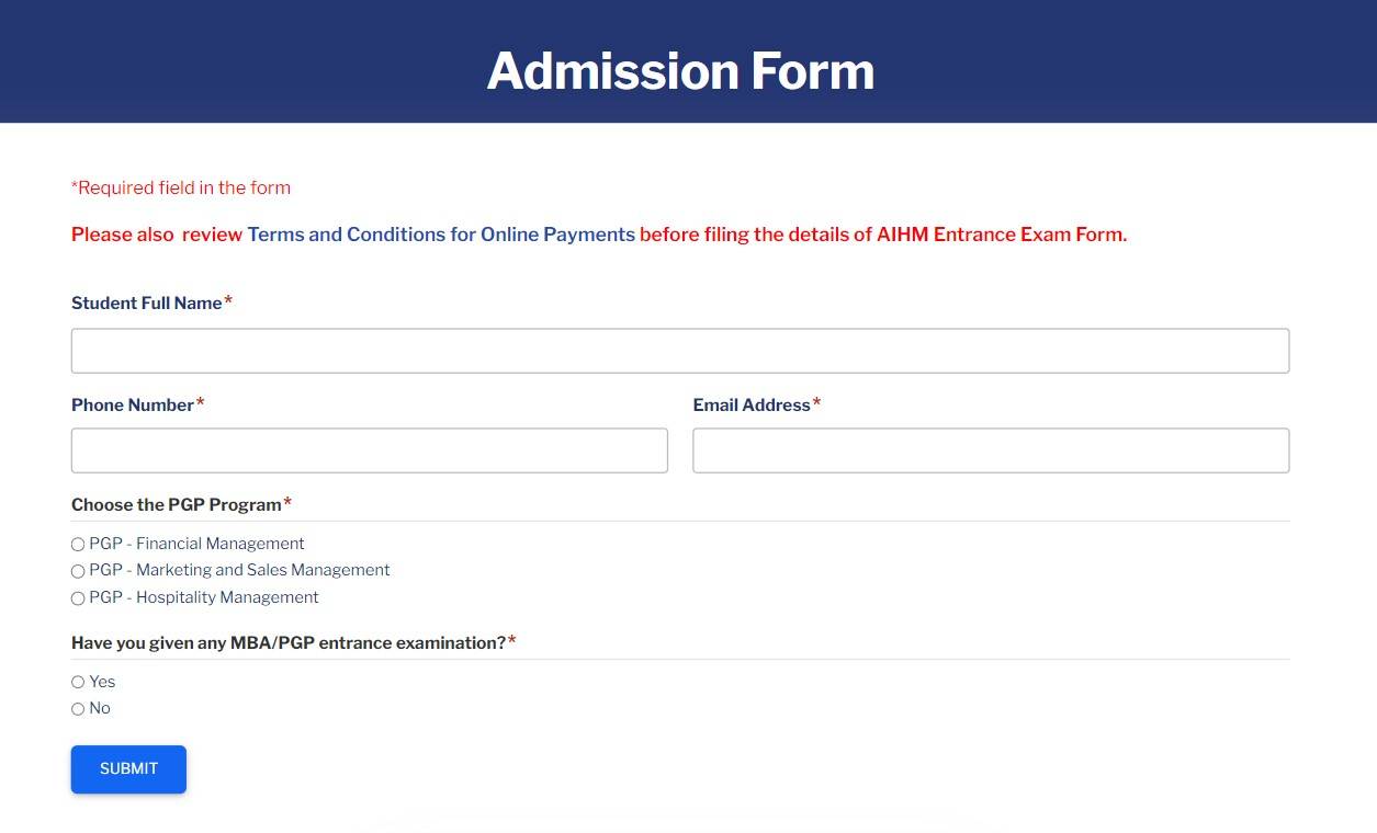 Checkout terms and conditions for payment of the application form fee here - https://aihm.ac.in/terms-and-conditions-for-online-payments/