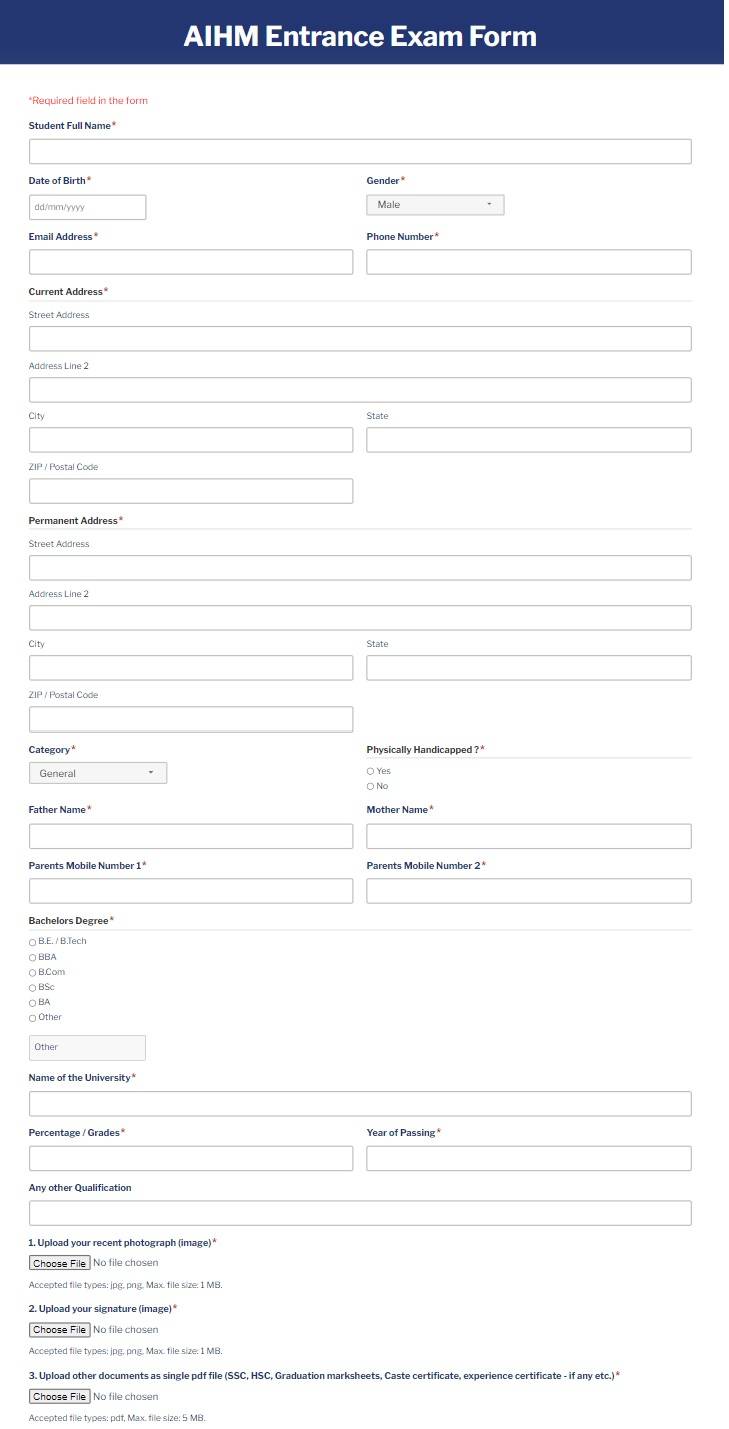 - Steps to Fill AIHM Entrance Exam Application Form 2023